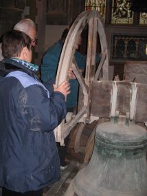 The English style of bell ringing involves the bells swinging through a full 360 degrees from mouth up to mouth up and back. The continentental style is for a hammer to strike the bell. The English style gives a richer sound but is more wearing on the frame, and the bell ringers.