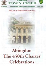 The Town Crier is an Abingdon Town Council publication, and is delivered to every house in Abingdon. Spring 2006 sees the 25th edition, and has a pull out events list for the 450th Charter Celebrations.