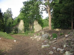 5 Trendell's Folley - the one made to look like a ruined chapel - has been fenced off awaiting some work. Currently it is obscured by bushes, but the view will be opened out and it will become more of a focus.
