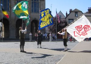 The Flag throwers from St Niklaas (a Vale twin town) also performed twice. The green flag is Abingdon's.