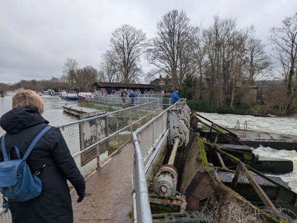 The weir path is open again, after a few days, and the notices have been updated to confirm this. It looks as though it was closed only as long as necessary for safety.