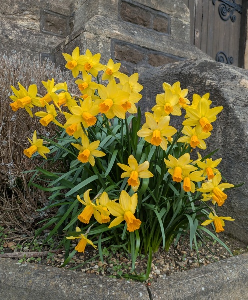 Daffodils are coming into bloom in groups. The weir path has reopened, restoring the circular walk that had been cut off by high water and a walkway risk assessment.