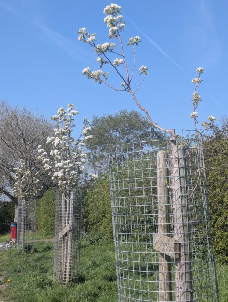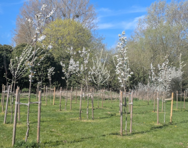 In Ladygrove Meadow, off Drayton Road, the 30 fruit trees planted in February 2025 by the town council and community volunteers are in blossom.