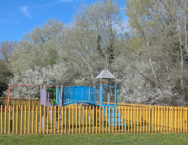 Blossom seems to be all around the Ladygrove Meadow playpark — including lots of blackthorn in the nearby hedgerows.
