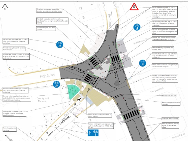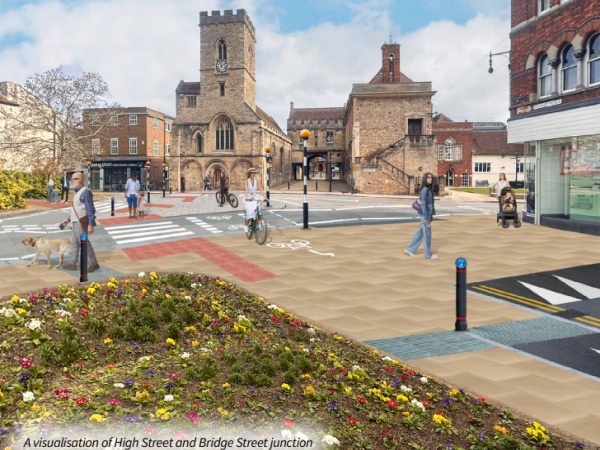* New pedestrian and cycle crossings at the Bridge Street / High Street junction