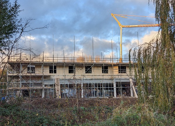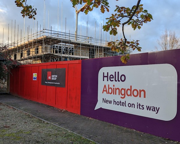 The new hotel by Tesco is two stories high, with two more to come. There is a Community Board on the hoardings to inform people about the progress.