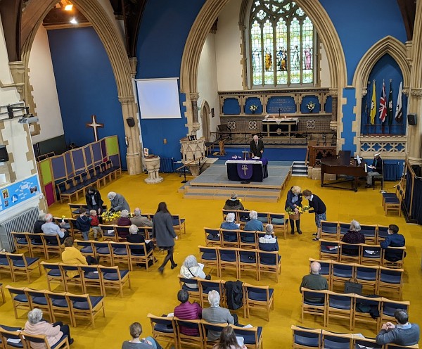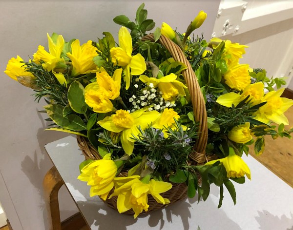 The clocks changed last night and today was Mothering Sunday. That meant at Trinity Church the younger ones helped make posies of flowers and put them in baskets.
