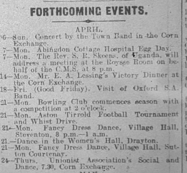 At the Abingdon Rural District meeting last week, Chairman Mr. L. Stevens reported that the newly appointed Road Surveyor and Sanitary Inspector, Mr. Earwaker, could not start his duties because a house could not be found for him. Mr. Earwaker may have to relinquish his current position unless accommodation is secured.