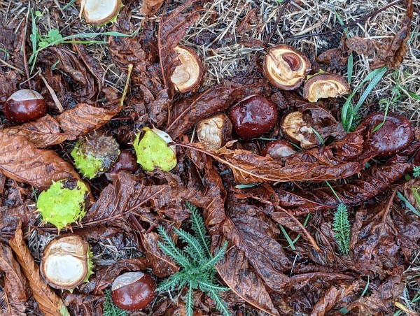 There was steady rain and a lot of conkers fell today on the last day of September.