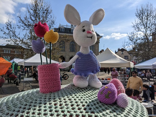 The crochet post box topper included the Easter bunny and eggs, and there was a larger Easter bunny walking around as part of the Eggstravaganza.