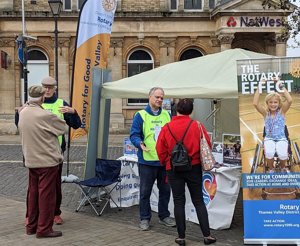 On the Market Place representing Abingdon Rotary was David Pope. He told me that the most important letter in the word altruism was not I but U. Doing things for others motivates Rotarians. Not I but You.