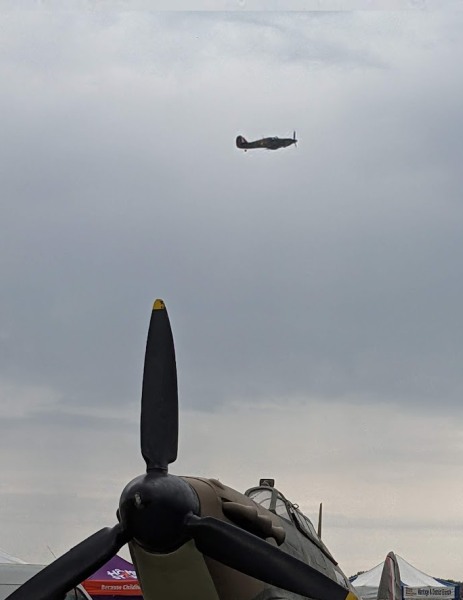 The sight of a Hawker Hurricane Mk1 flying above was made more striking by a replica on the ground.