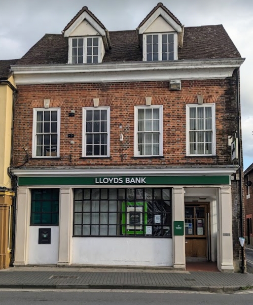 Lloyds will remove the ATM, night safe, and other bank equipment. The business part of the building at the front will become smaller and may suit a start-up. The rest of the building will become 8 one-bedroom flats. The flat roof extension at the back of the building will be knocked down and rebuilt bigger. The front of the building will stay mostly the same (Grade II Listed).
