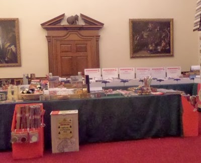 You just drop your cards and money in the white boxes provided – like the one pictured at Charity Christmas Cards in the Bear Room at the Guildhall.