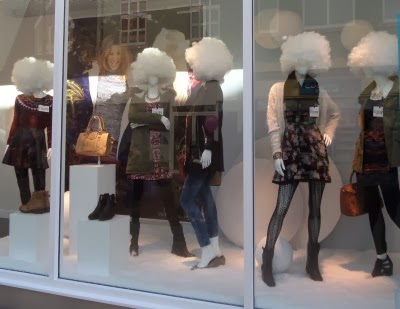 Big white Afro wigs are part of the first display in Abingdon’s biggest new fashion shop window