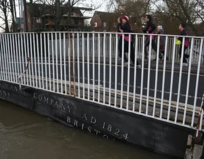 Water is roaring downstream, towards Culham, and buffeting the boats tied up on the Wilsham Road railings, but at St Helens Wharf the water is gently washing over the pavement.