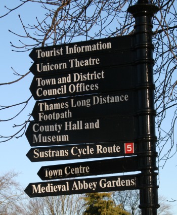 All in A Line 3 Replies Perhaps it is the prevailing wind but all the signs down near the Abbey Gardens are pointing in the same direction.