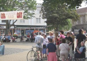At the same time the Abingdon Concert Band were performing an outdoor concert. The Abingdon Concert Band has been active in the Abingdon area for over 20 years. It was originally called the Abingdon Military Band, and was founded by a number of ex-service bandsmen. Their membership is open to players of a suitable standard, and they play varied music, not just marches, which is why they got renamed.