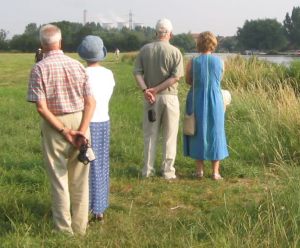 Earlier, people had been waiting along the river for their arrival, wandering why they were taking so long. The flotilla had been expected at about 5:30, but 6:00 passed and there was not a sign. This is a good sign as it means a good year for swans.