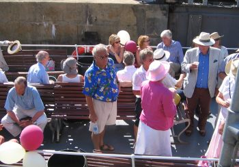On board this boat a piano played sultry jazz, and the conversation had a refined hum.
