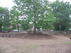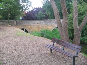But since then it has lost its way. It is the area of ground at the junction of Drayton Road and Marcham Road. There are bins, seats, gravel, some trees, and a view over the river Ock. The area has been cleared in the last month. There is a mound of earth where a tree grows.