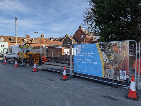Work is underway to install Park and Charge EV Charging hubs in 3 car parks in Abingdon. West St Helen Street will have 12 charge points,