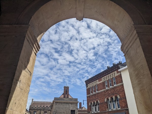 Blue sky from under the arches