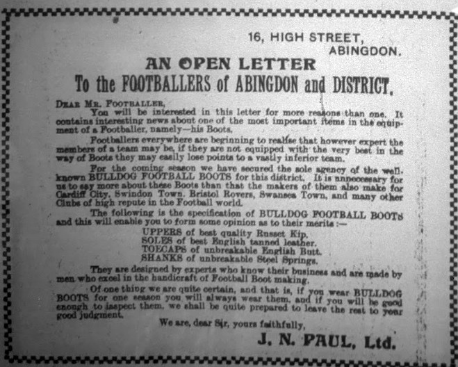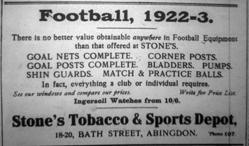 Last Saturday the Abingdon Town F. C. opened their season with a match in the 1st Division of the North Berks League when they met on the Abingdon ground the R.A.0.C. Didcot, the home team being the victors by 3 goals to nil.