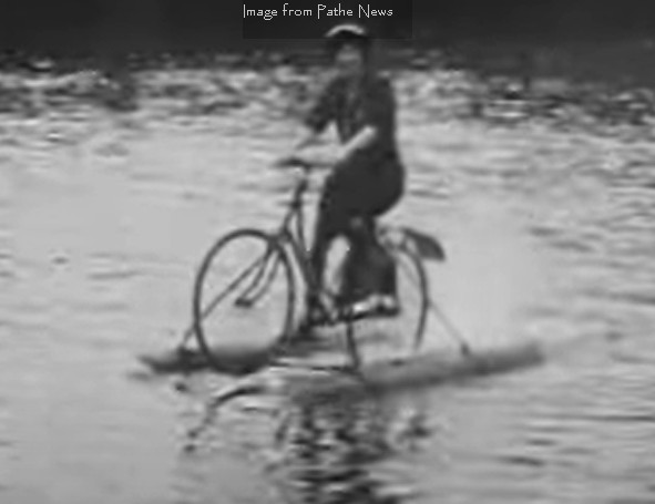 A large crowd congregated on the towpath and on Abingdon Bridge on Monday afternoon to witness the swimming and water-cycle display given by Miss Zeta Hills, the channel cyclist. The cycle was her own invention and crossed the channel on August 16, 1920.