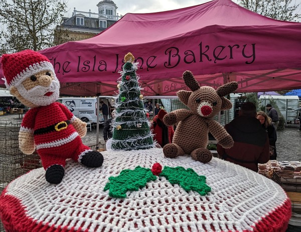 The Christmas postbox topper on the Market Place has Father Chrismas and Rudolph.