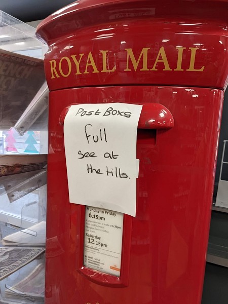 I have not seen a topper in the Co-op yet, but there was a notice saying, ‘Post Box full’. There were also large lunchtime queues at the post office itself. Allow plenty of time for posting this year.