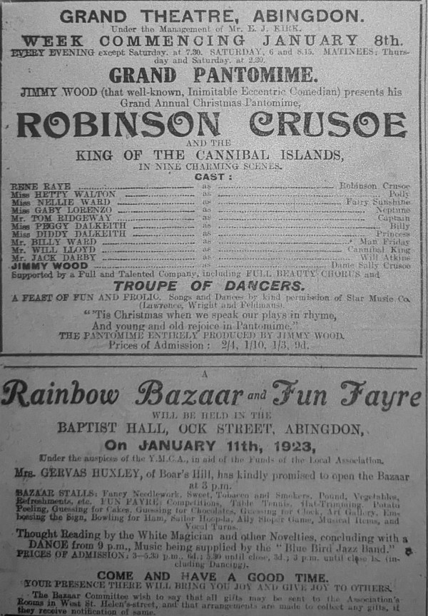CONCERT AT THE UNION INSTITUTION: A concert arranged and organised by Mrs Roberts and given by the children of Dry Sandford School, songs being rendered by the children, took place at the union and was a great success. Mrs Reynolds generously supplied the inmates with refreshments during the interval.