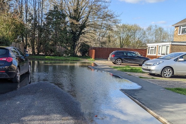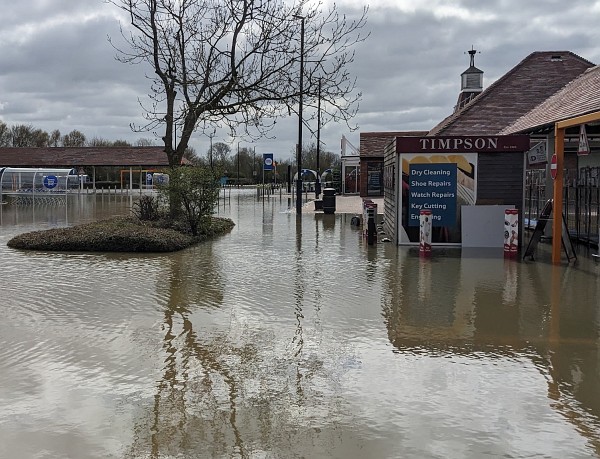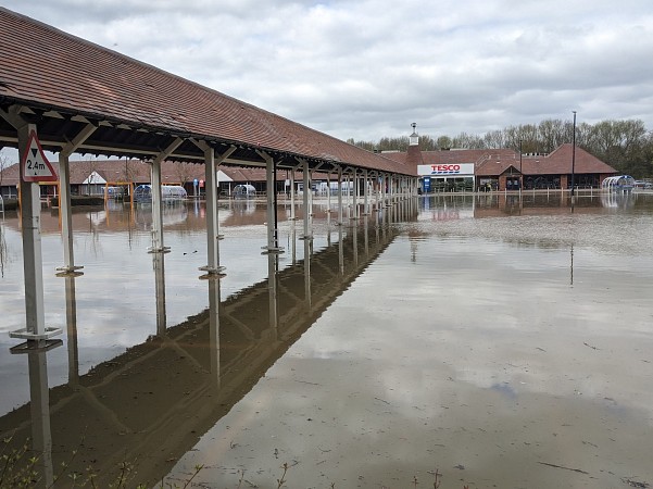 This morning, the heavy rain from Friday along the River Ock valley had flooded the Tesco car park and access roads.