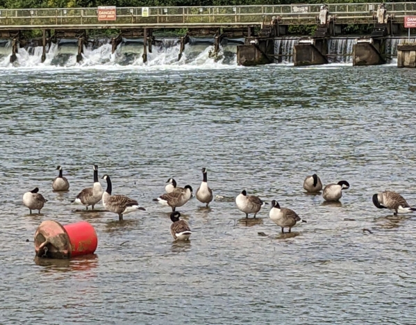Downstream from Abingdon Lock, a new sand bank has been created from silt. The Canada Geese go there to stand and preen and that shows how shallow the water is over that area. There are buoys to warn boats but the area does not get dredged.