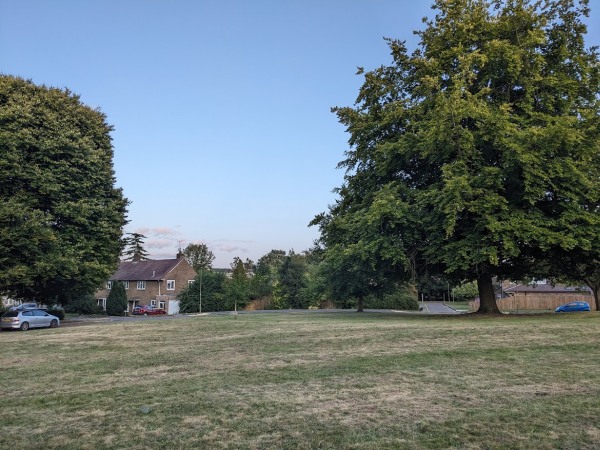 Nothing was ever built on the site where the manor house stood. Today, it’s a green space with trees, a plaque commemorating the house, and its foundations buried underground. This picture offers a similar view from the green towards Kingston Close.
