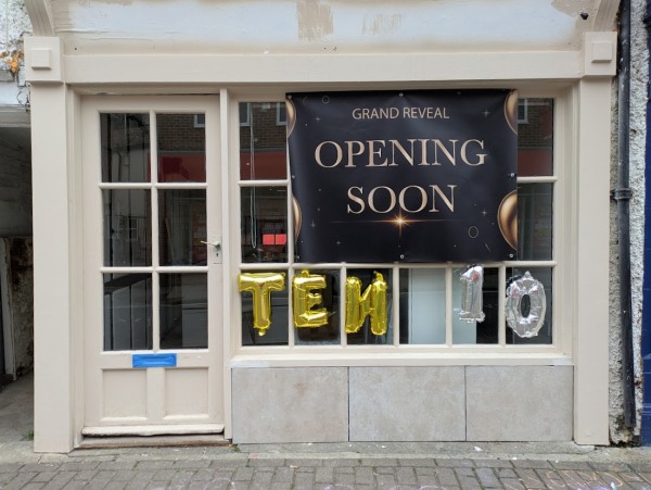 Across the road, another shop is being worked on. Three weeks ago, a sign in the window promised a ‘Grand Reveal — Opening Soon: TEN 10.’ That may or may not be a clue, but the balloons that decorated the window have now gone as more fitting out continues.