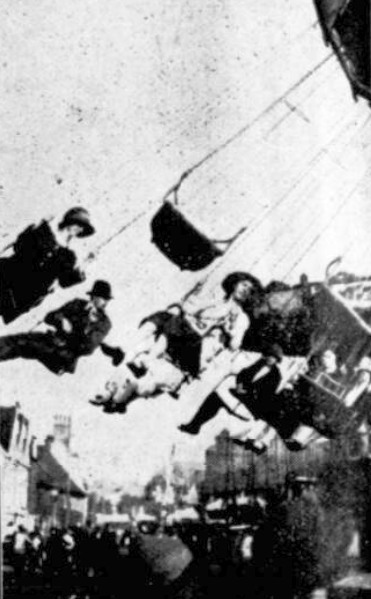 The Oxford Journal Illustrated photographers captured the scene: the fairground booths and rides on the Square and the chair-o-planes, which “had their usual large quota of patrons.”