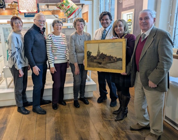 Today the painting was presented to Abingdon Museum in the presence of the Mayor of Abingdon, Cllr Rawda Jehanli, Cllr Penny Clover, Chair of the Museum Sub-Committee, and Dan Sancisi, Museum Manager, by members of the church twinning committee.