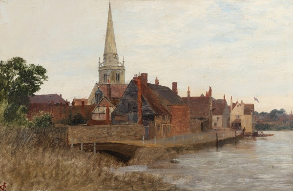 Abingdon Wharf and the River Thames with the spire of St Helen’s Church is a familiar view. Cole portrayed the Thames beneath a clouded sky. Quite a few of the buildings and the Ock bridge have changed since this painting.