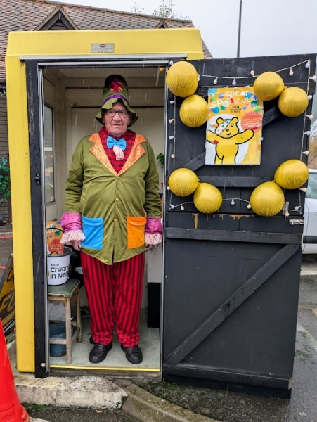 I’ve lost track of the years this intrepid collector has been at his post at Coxeters in Abingdon, doing his bit for Children in Need. In the summer he’s there in his shorts, tanned like he’s just stepped off the plane from somewhere far more sunny. And when November brings rain, and ‘it’s horrible out there’ – like today, he is there to lift the spirits raising money for BBC’s Children in Need.