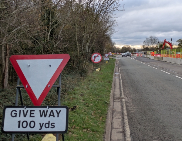 Traffic heading towards Lodge Hill through Bagley Woods on the A4183 (Oxford Road) should be aware that the junction layout has now changed. A new Give Way has been introduced at the south-facing slip road onto the A34, meaning vehicles travelling from Abingdon and joining the A34 now have priority. Drivers are given advance warning with Give Way signs at 200, 100, and 50 yards, as well as at the junction itself, along with two Changed Priorities Ahead signs.