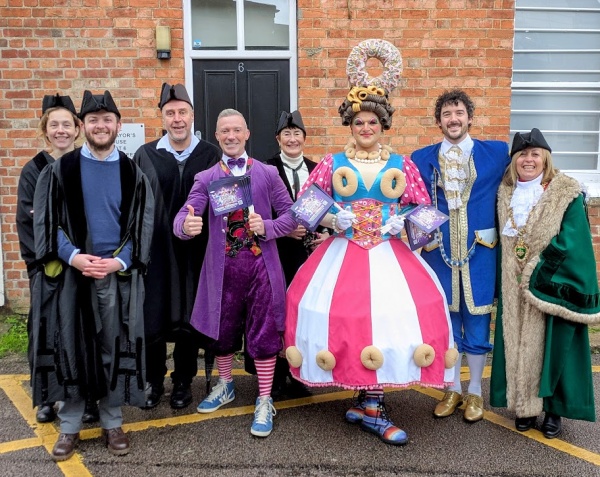 The parade route was closed for about twenty minutes, and the parade participants ended up in the carpark behind Bury Street where I took this picture of members of the Beauty and the Beast cast with the Mayor and Town Councillors.