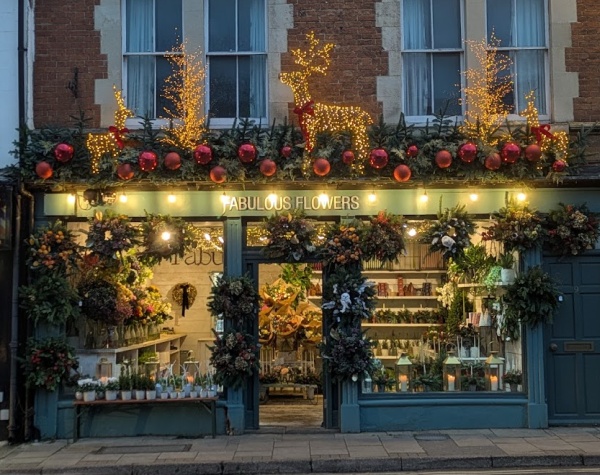 There was a prize for the most festive market stall. There was no prize for the most festive shop front but plenty of good competition. This is Fabulous Flowers.