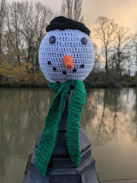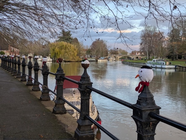 The bollards along St Helen’s Wharf have once again been topped with crochet tops. Snowmen, robins, and Christmas puddings now alternate along the railings, adding festive interest to this picturesque stretch of the Thames.