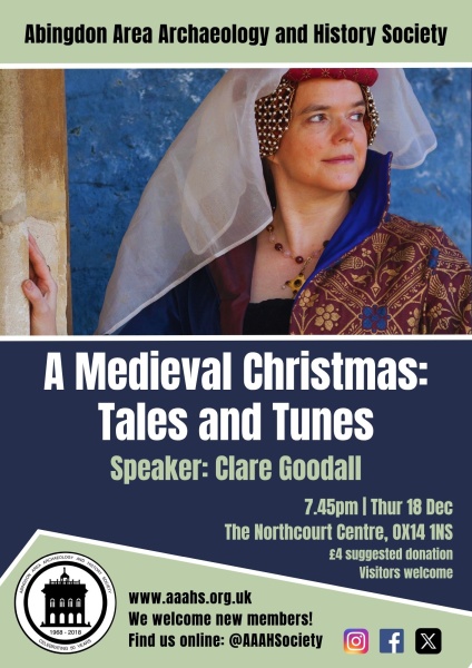 A seasonal talk by Clare Goodall for the Abingdon Area Archaeology & History Society on Thursday 18 December, 7:45pm (doors 7:15pm) at the Northcourt Centre. Christmas tales and music from the Medieval and Renaissance, with thoughts of the obby Horse, wassailing, guising, the Feast of Fools and how music wanders over time. Suggested donation £4.
