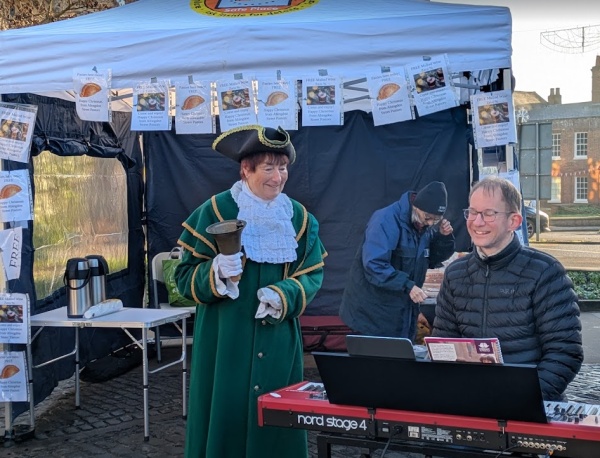 The Town Crier announced each of the carols. A keyboard player and violinist accompanied the singing.