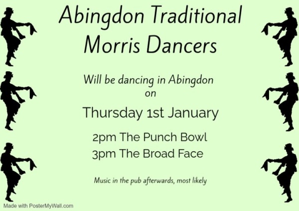 In the afternoon, Abingdon Traditional Morris Dancers will be welcoming the New Year with dancing at the Punch Bowl and the Broad Face.