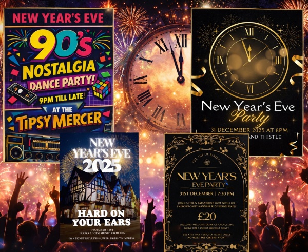 There are posters for New Years Eve celebrations at four of the Abingdon pubs, but most pubs have something on. Some pubs are walk-in, but there are also ticketed nights which need booking.