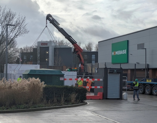 Yesterday, a crane was lifting cabins from lorries into the yard at the rear of the former Homebase store at Fairacres Retail Park in Abingdon.