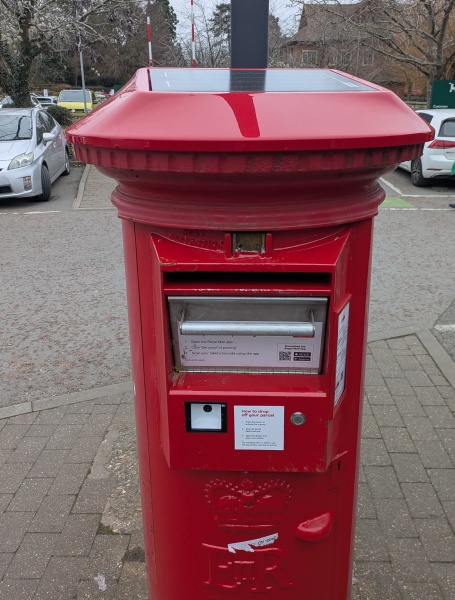 The same thing happened to the Waitrose post box in Abingdon, before Christmas. When it emerged from its wrapping it had gained a solar panel, barcode scanner, and drop-down compartment for parcels, along with a slot for letters.